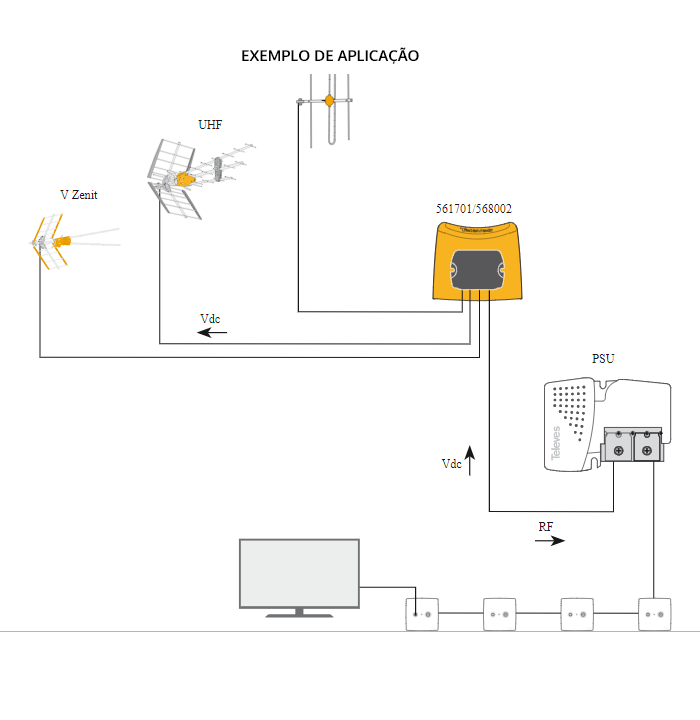 AMPLIFICADOR MASTRO NANOKOM 3E/1S UHFdc – UHF -VHFmix TELEVES