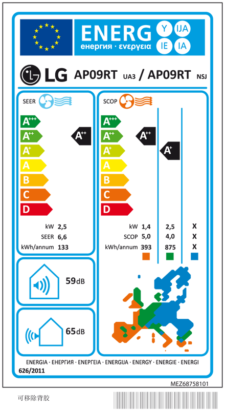 Classe Energética (SEER/SCOP): 6.6 / 4.0; A++/A+