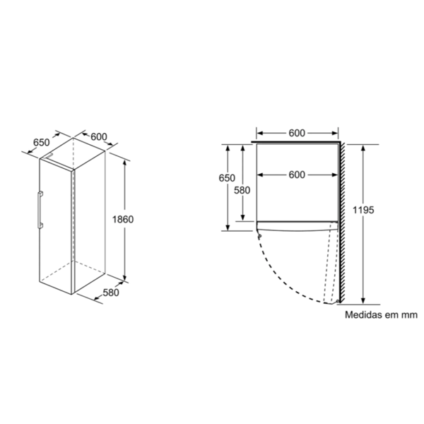 Aparelho (A x L x P sem puxador): 176 x 60 x 65 cm