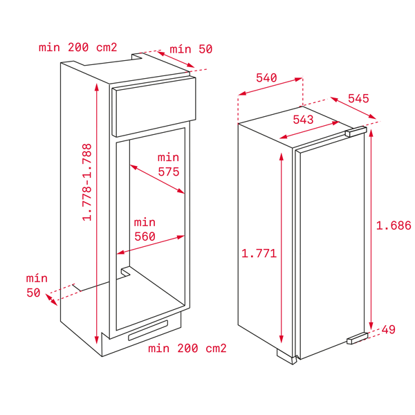 CLASSE F – NO FROST – (AXLXP) 177,1X54,3X54,5CM – 220LTS – 8 COMPARTIMENTOS