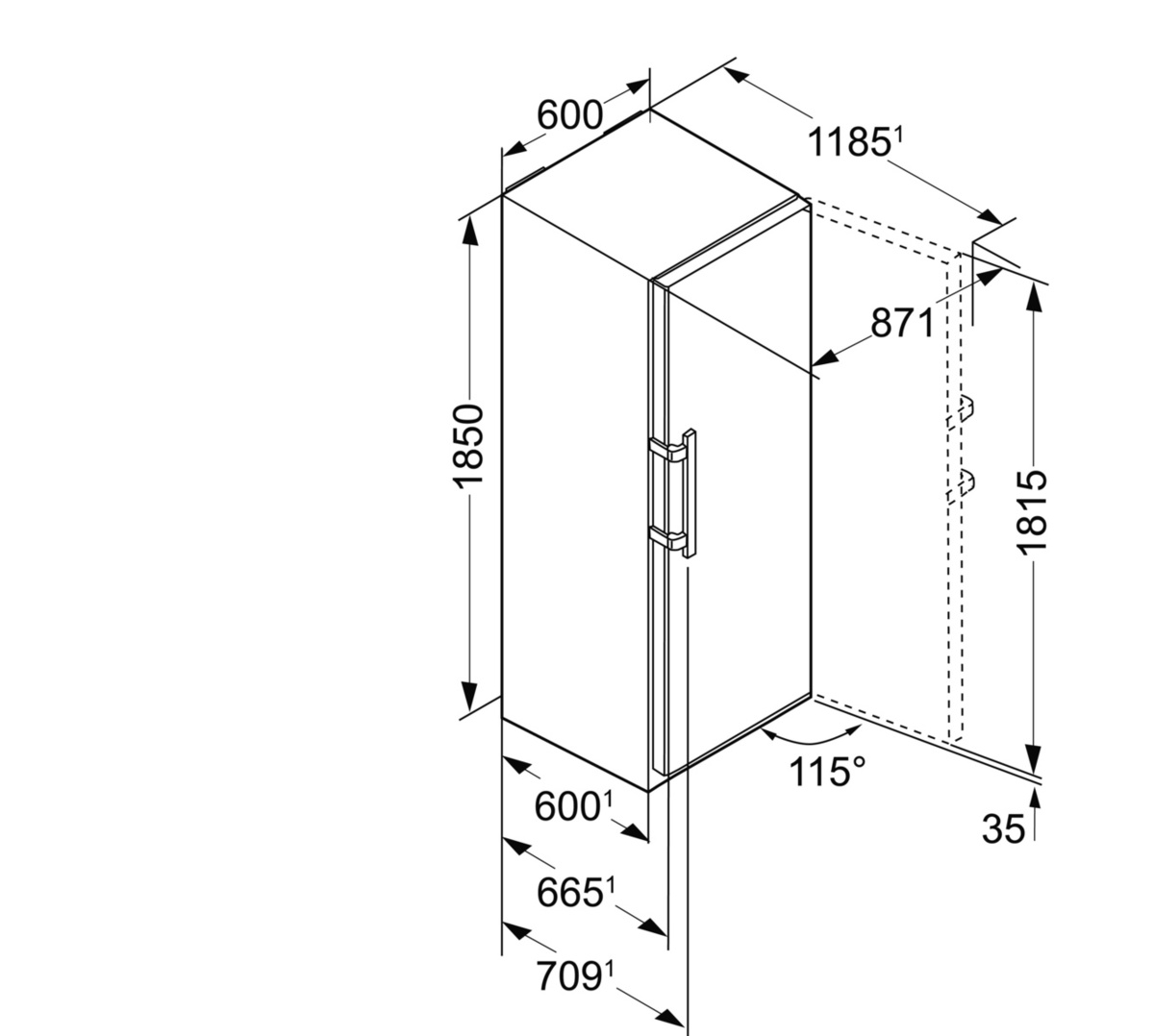 Dimensões exteriores (axlxp): 185x 60 x 66.5cm