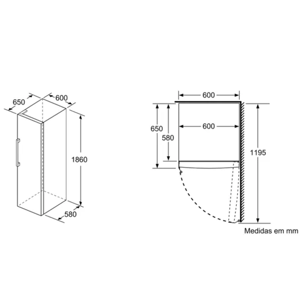 Aparelho (A x L x P sem puxador): 186 x 60 x 65 cm