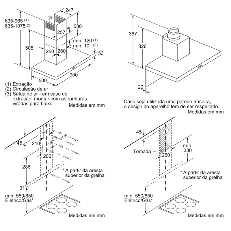 Capacidade de extração de acordo com a norma DIN/EN 61591 em modo de saída de ar no nível normal máximo; 449 m3/h, nível intensivo 756 m3/h