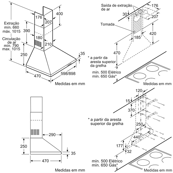 CLASSE D – LARGURA: 90CM – CAP. MÁXIMA EXTRAÇÃO: 380M3/H – 64dB(A) – INOX