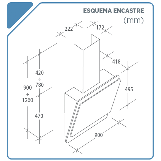 CLASSE A – LARGURA 90CM – CAP. MÁXIMA EXTRAÇÃO 612M3/H – 66db – VIDRO BRANCO