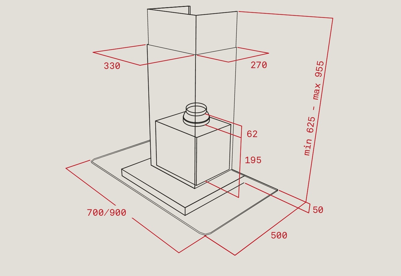 CLASSE A – LARGURA 90CM – CAP. MÁXIMA EXTRAÇÃO 807M3/H – VIDRO
