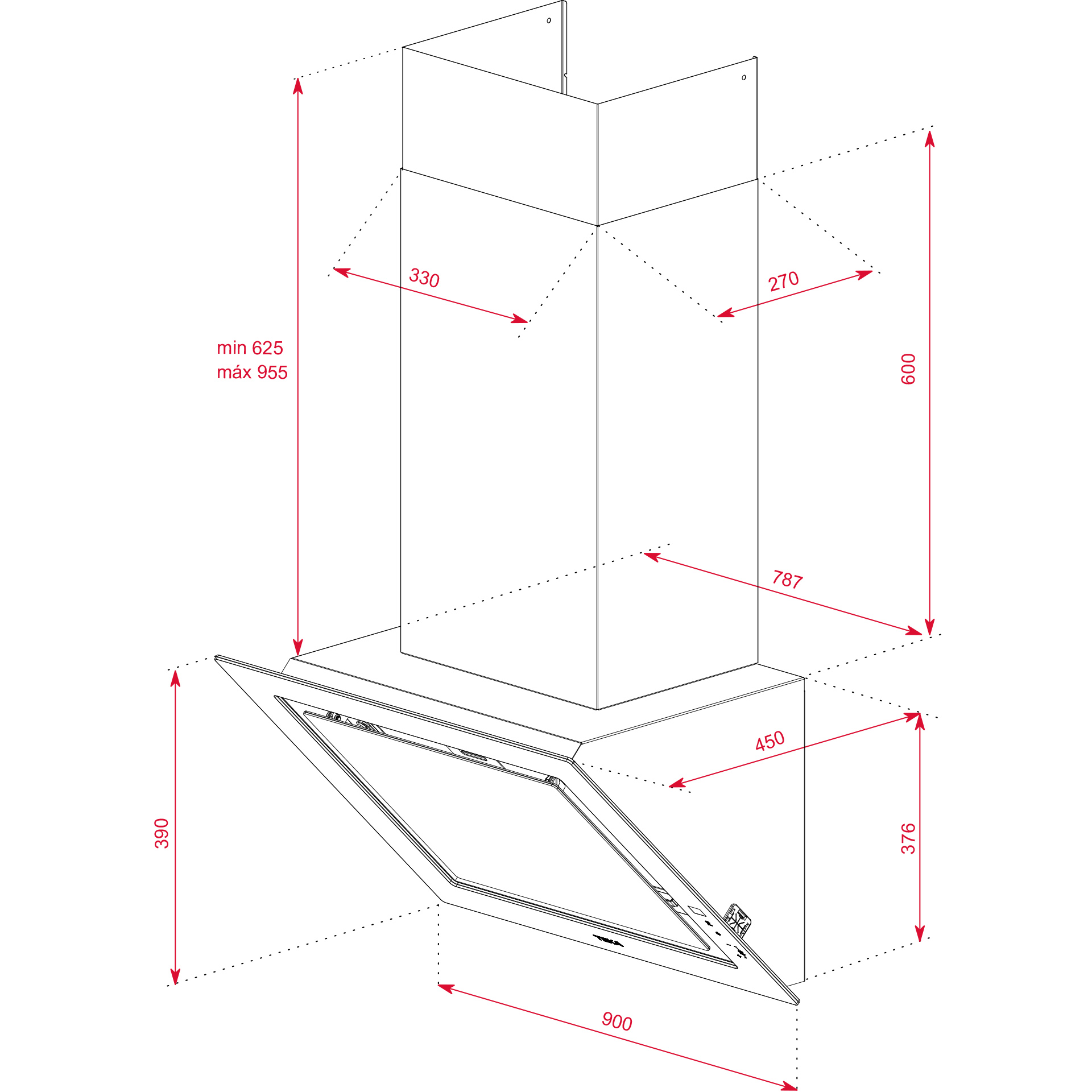 Medidas gerais (axlxp): 800 – 1200 x 900 x 450mm