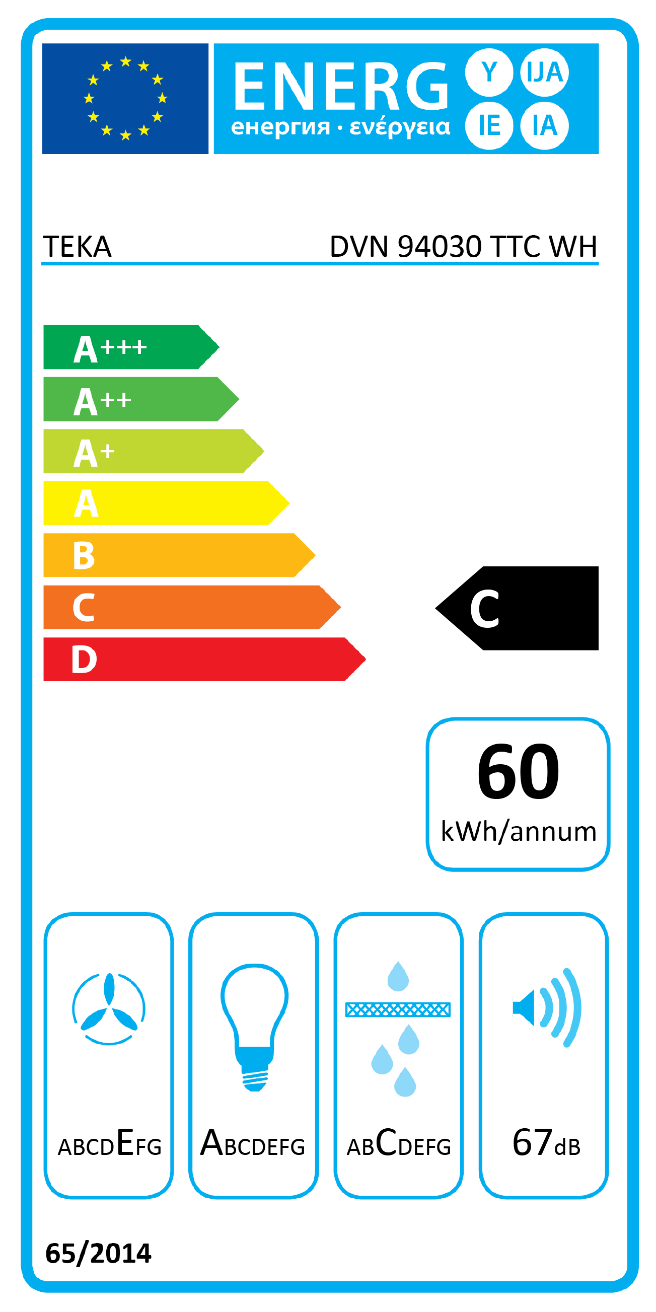 CLASSE C – LARGURA 90CM – CAP. MÁXIMA EXTRAÇÃO 425M3/H – 69dB – BRANCO