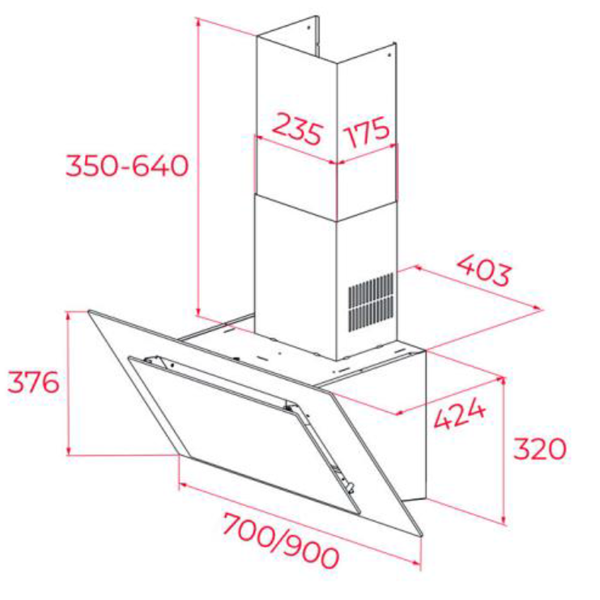 CLASSE A+ – LARGURA 90CM – CAP. MÁXIMA EXTRAÇÃO: 698M3/H – 73dB – PRETO