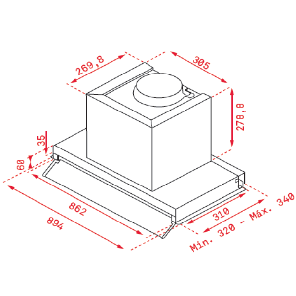 Capacidade de extração: min. 255 m3/h – máx. 620 m3/h