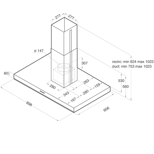 CLASSE A – LARGURA 89,8CM – CAP. MÁXIMA EXTRAÇÃO: 779M3/H – 71dB(A) – INOX