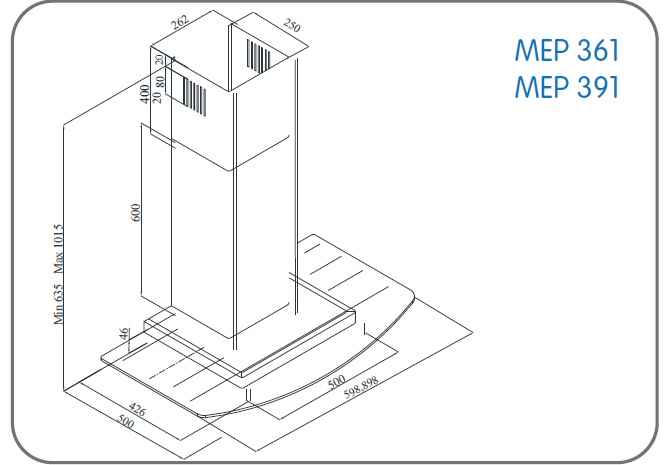 CLASSE C – LARGURA 90CM – CAP. MÁXIMA EXTRAÇÃO: 560M3/H – INOX