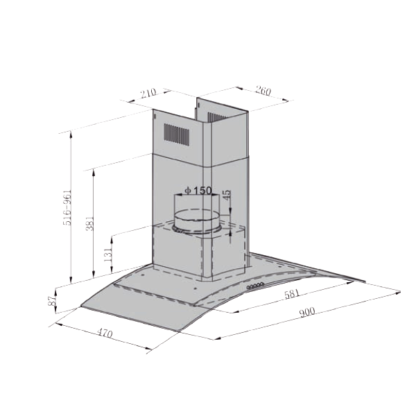 Chaminé ajustável (516-961mm)