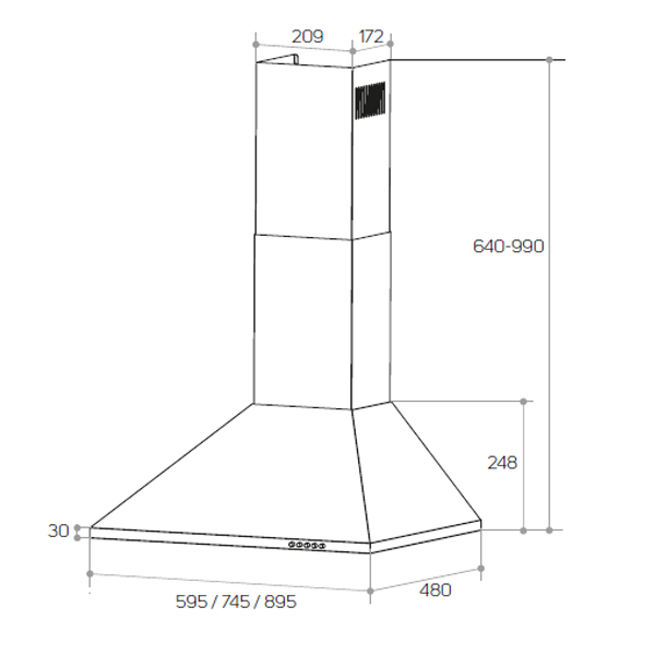 CLASSE A – LARGURA 70CM – CAP. MÁXIMA EXTRAÇÃO: 650M3/H – INOX