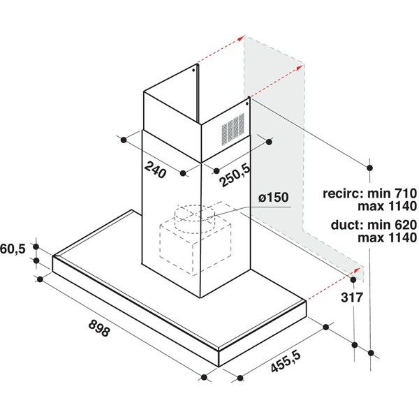 CLASSE A – LARGURA 89,8CM – CAP. MÁXIMA EXTRAÇÃO: 750M3/H – 62dB – PRETO