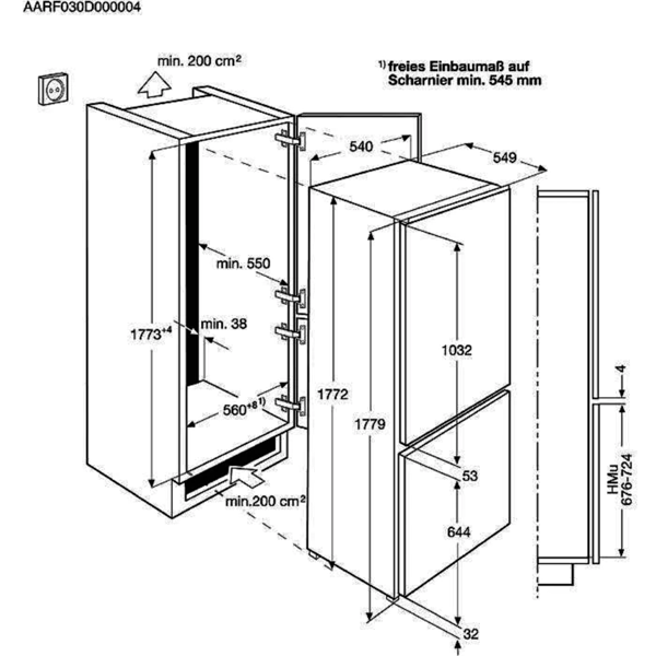 Profundidade encastre, mm: 549