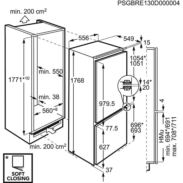 Altura encastre, mm: 1780