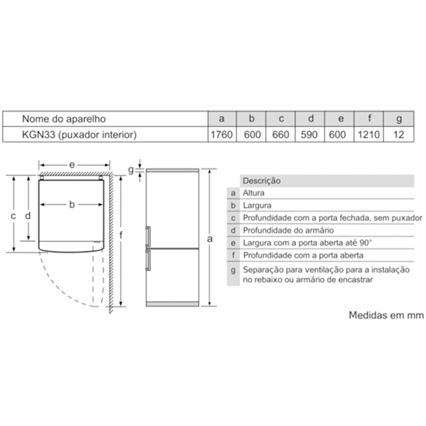 Aparelho (A x L x P sem puxador): 176 x 60 x 66 cm