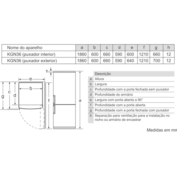Aparelho (A x L x P sem puxador): 186 x 60 x 66 cm