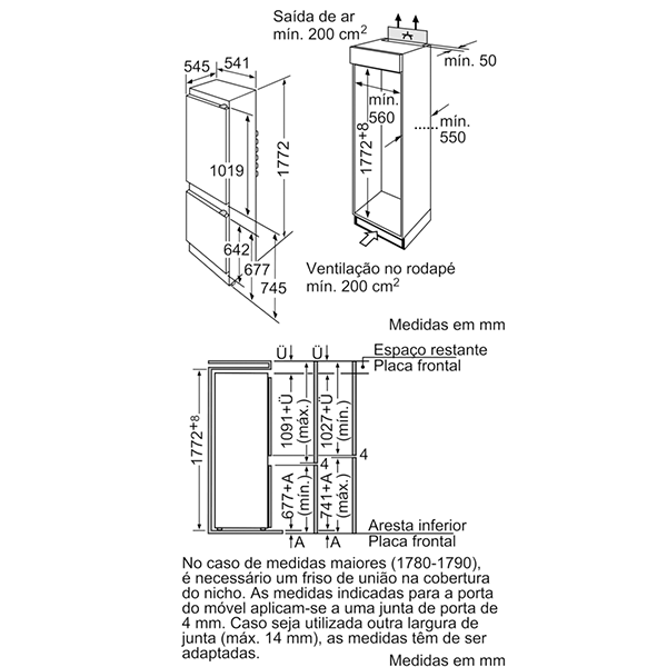 Dimensões de encastre (AxLxP): 177,5 cm x 56,2 cm x 55,0 cm