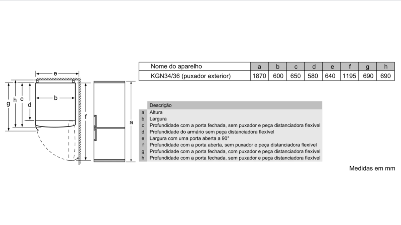 Aparelho (A x L x P sem puxador): 187 x 60 x 65 cm