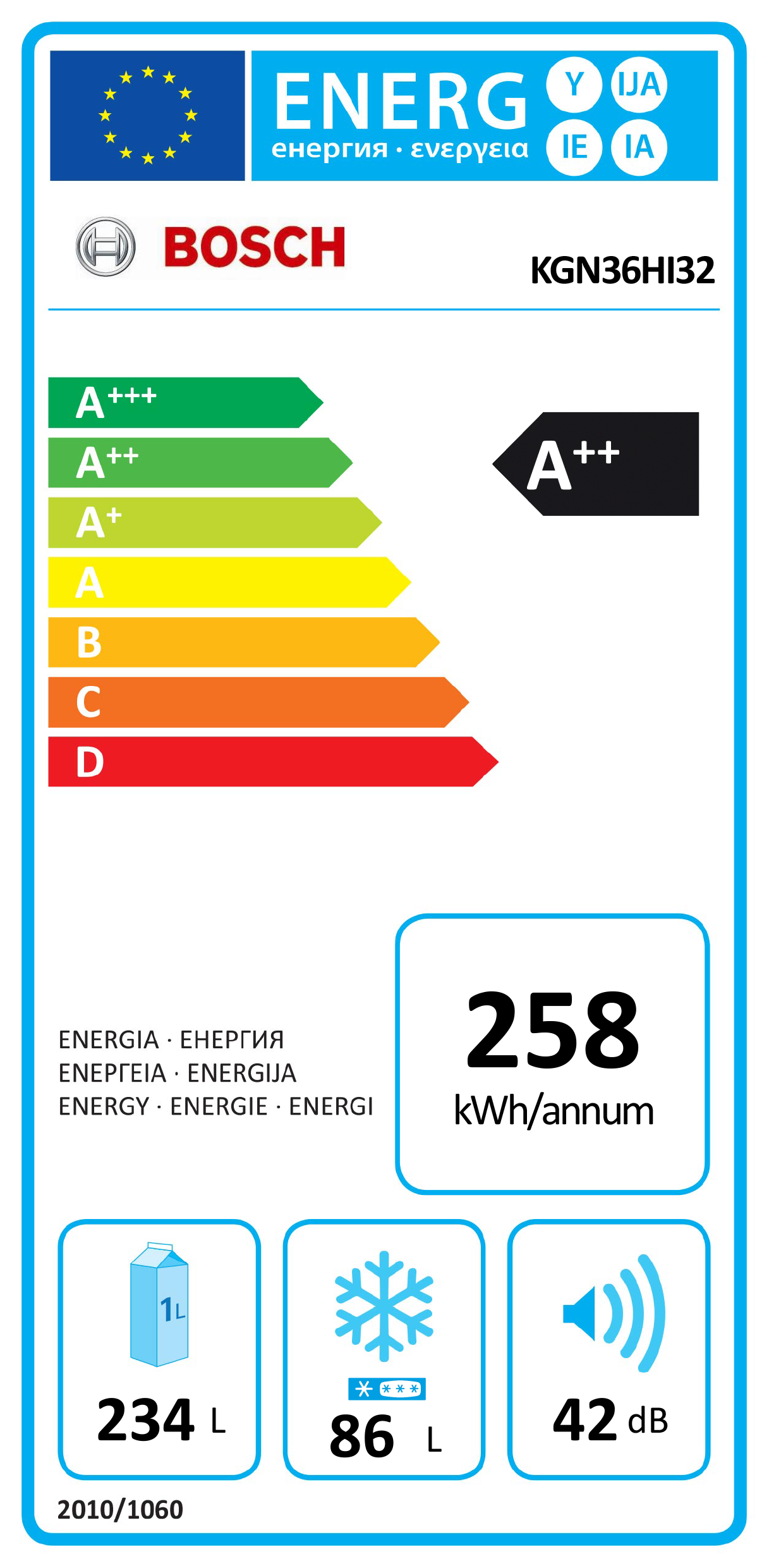 Classe de eficiencia energética: A++ numa escala de classes de eficiência energética de A+++ até D
