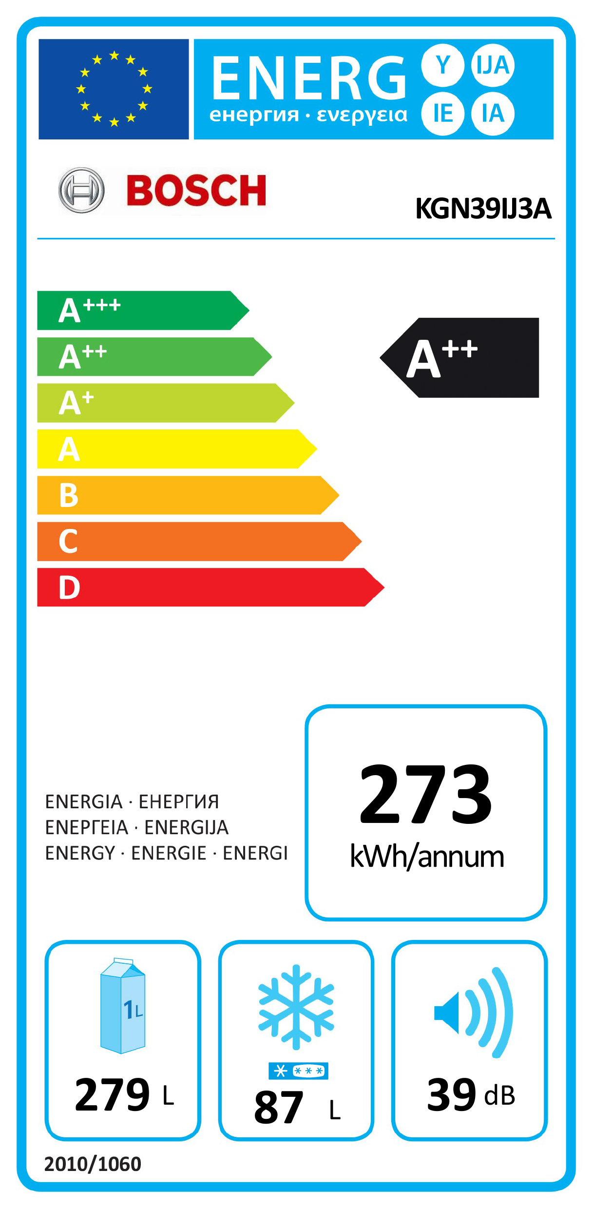 Classe de eficiencia energética: A++ numa escala de classes de eficiência energética de A+++ até D