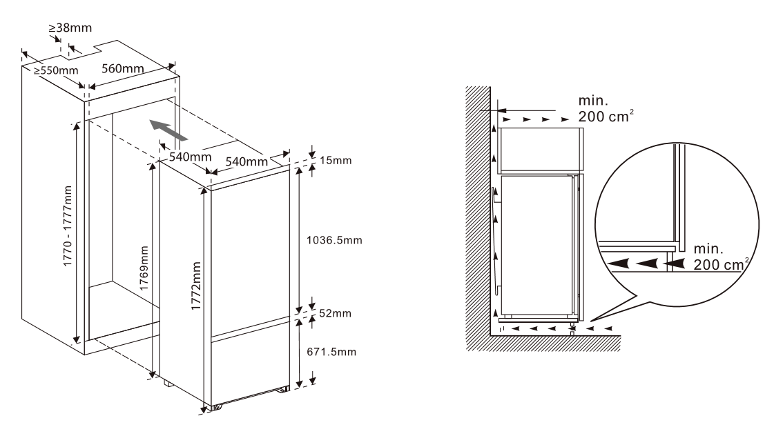 CLASSE A+ – (AXLXP) 178,5X54X54CM – 250LTS