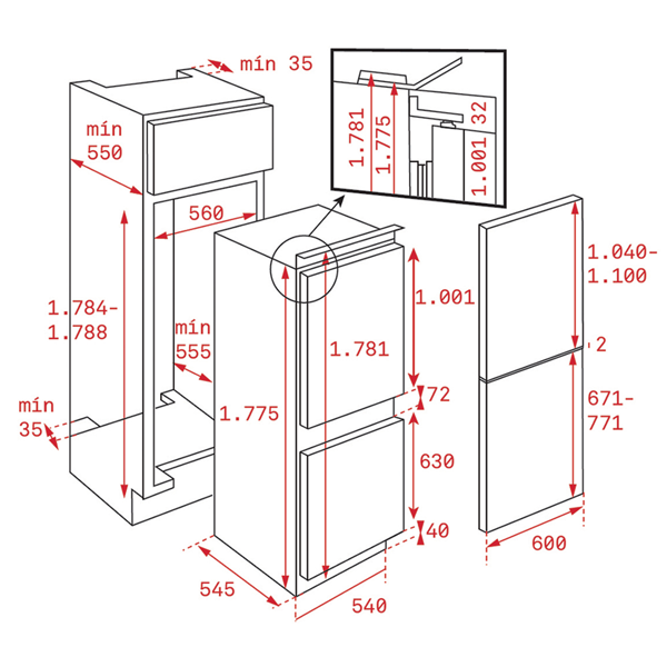 Medidas exteriores (axlxp): 1775x540x545mm
