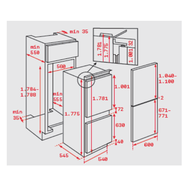 Medidas gerais (AxLxP): 1775x540x545mm