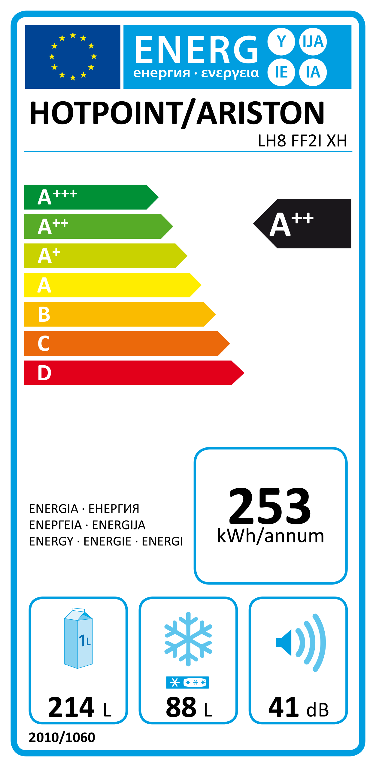 CLASSE A++ – NO FROST – (AXLXP) 189X60X68.7CM – 302LTS – INOX