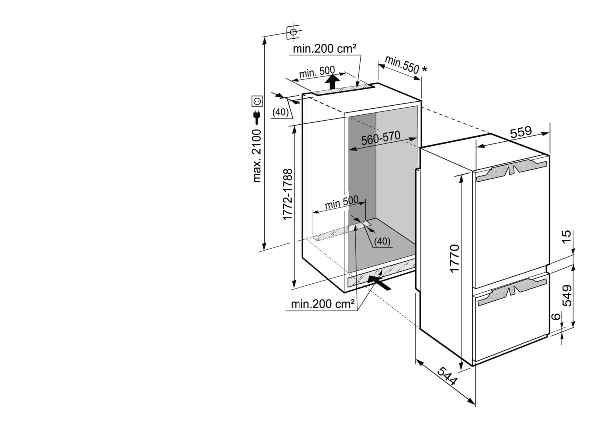 Dimensões do nicho (axlxp): 177.2 – 178.8 x 56 – 57x min 55 cm