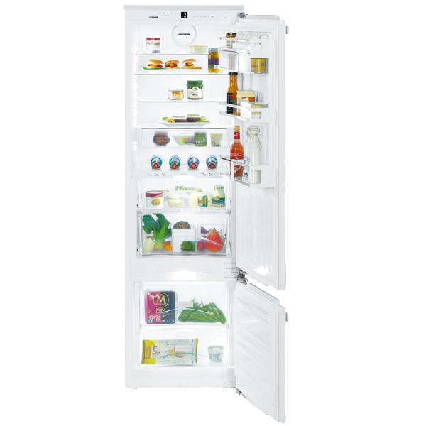 4 prateleiras Premium GlassLine das quais 1 dividida, suporte para garrafas, bandeja para ovos