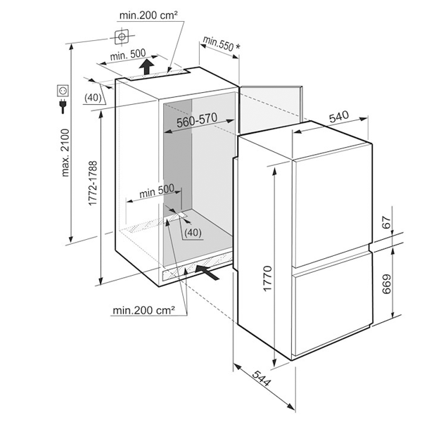 Dimensões do nicho (axlxp): 177.2 – 178.8 x 56 – 57x min 55 cm