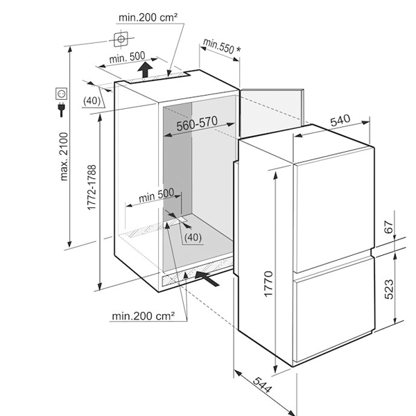 Dimensões do nicho (axlxp): 177.2 – 178.8 x 56 – 57x min 55 cm
