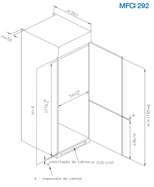 CLASSE A+ – NO FROST – (AXLXP): 178X56X55CM – 238 LTS