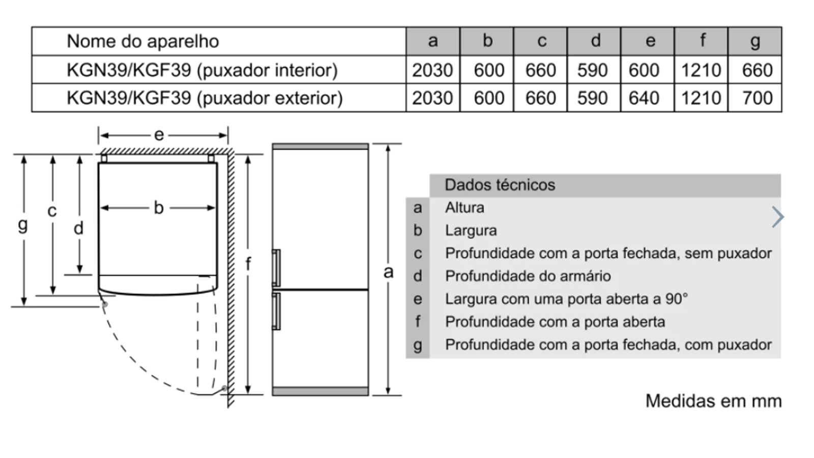 Aparelho (A x L x P sem puxador): 203 x 60 x 66 cm