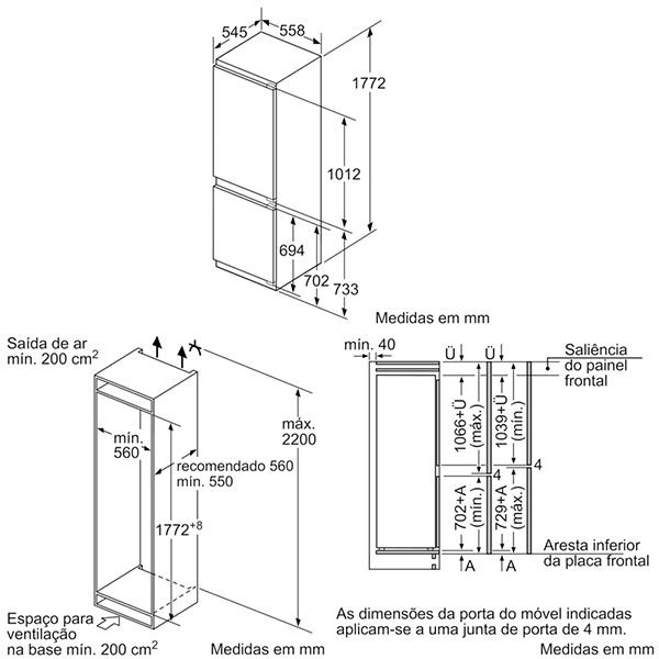 5 prateleiras na porta, das quais 1 compartimento para manteiga/queijo