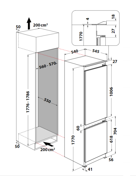 CLASSE F – (AXLXP): 1770X540X545MM – 278LTS – NO FROST