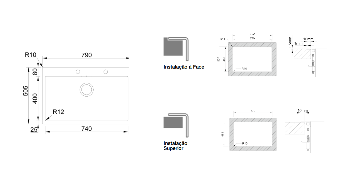MEDIDA EXTERNA: 790X505MM – ESCOVADO – APLICAÇÃO: À FACE OU SUPERIOR