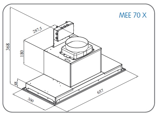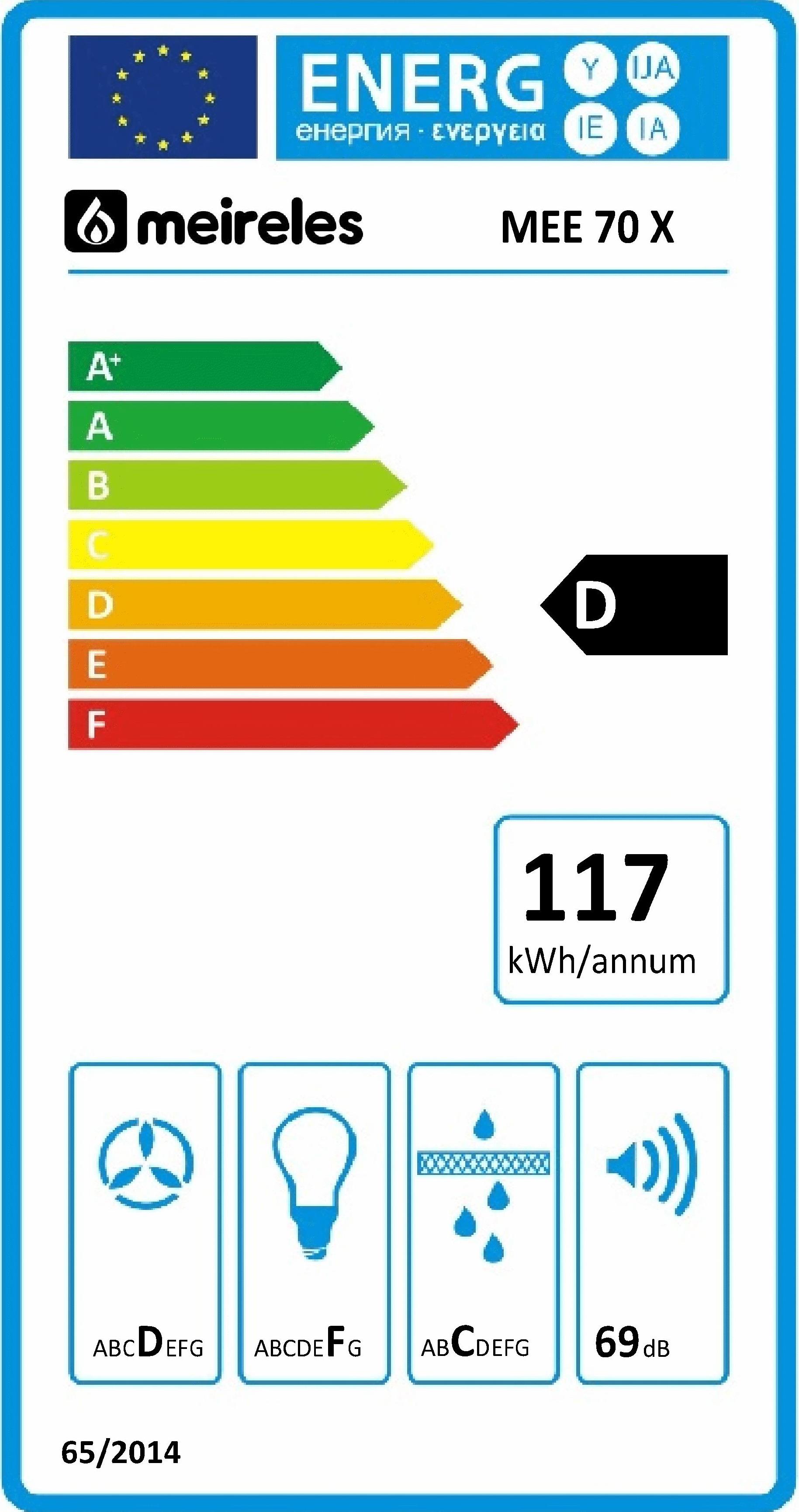 CLASSE D – LARGURA 70CM – CAP. MÁXIMA EXTRAÇÃO 540M3/H – 69dB – INOX