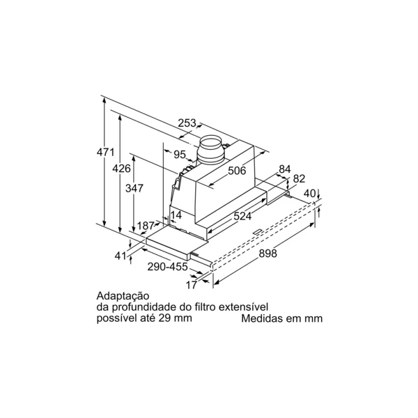 Medidas do aparelho (AxLxP): 426 x 898 x 290 mm