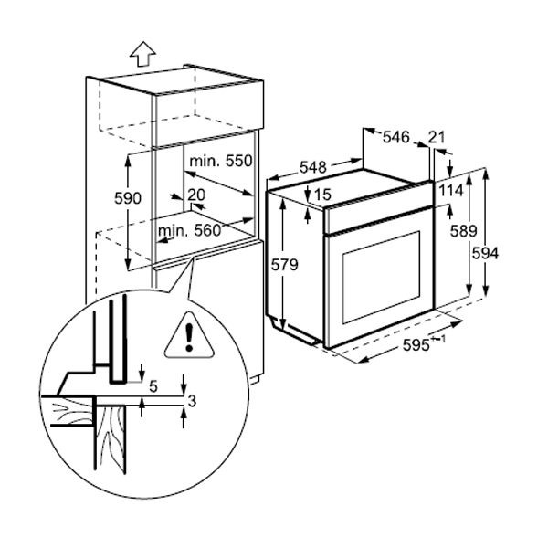 Dimensões de encastre (AxLxP), em mm: 600x560x550