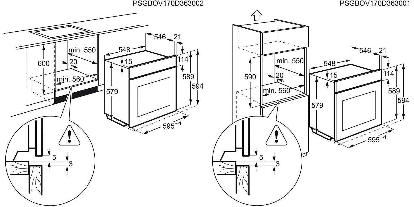 Dimensões de encastre (AxLxP), em mm: 590x560x550