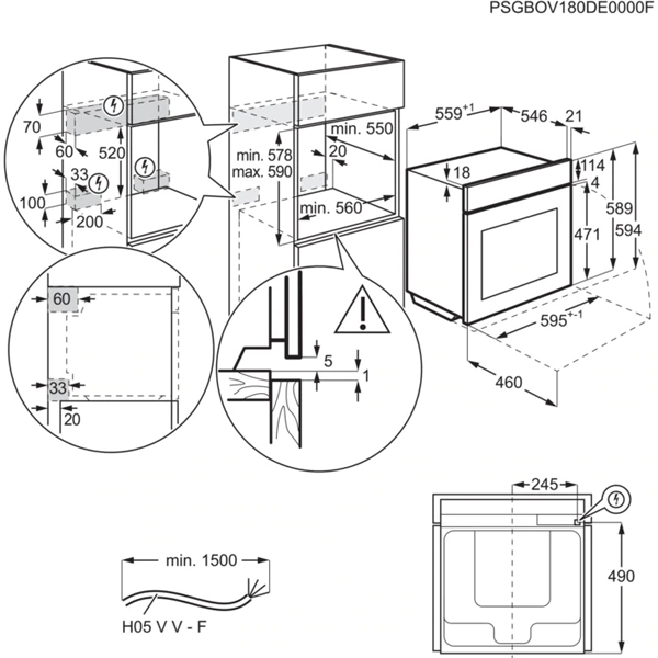 Dimensões de encastre (AxLxP), em mm: 590x560x550