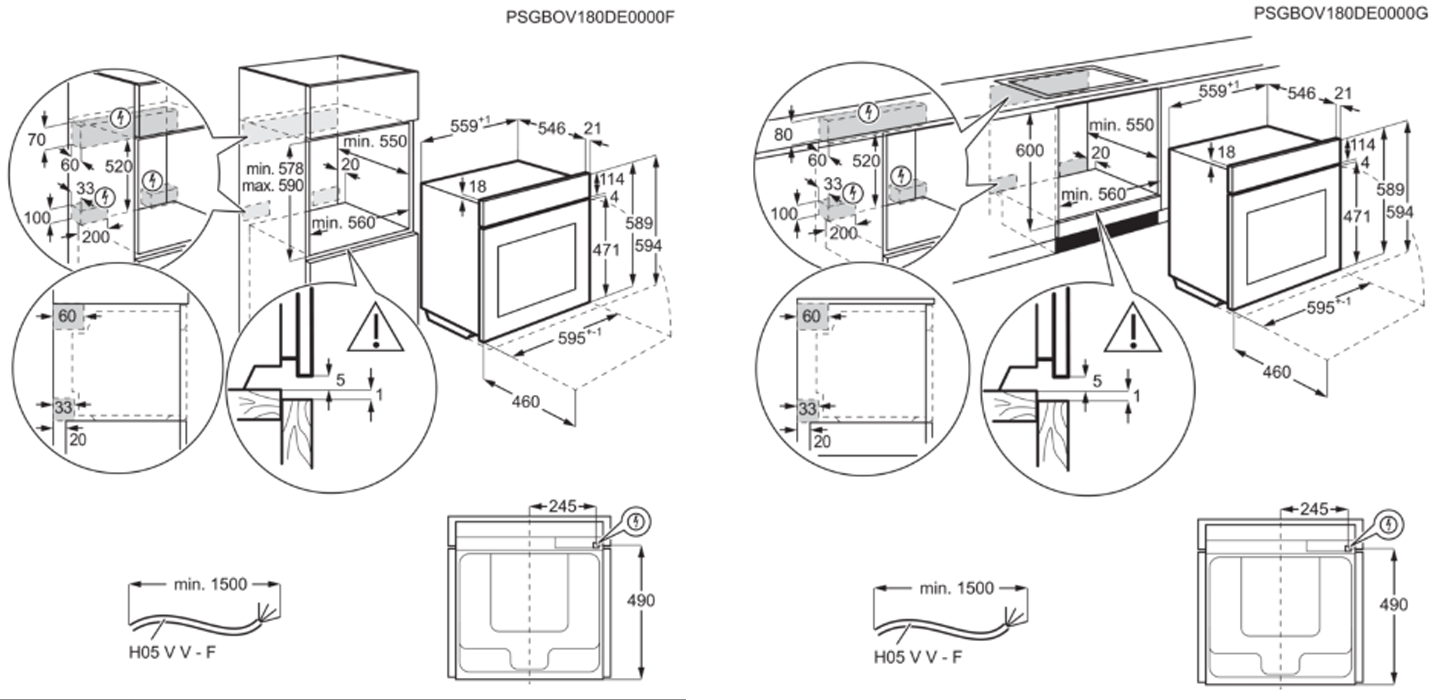 Dimensões de encastre (AxLxP), em mm: 590x560x550