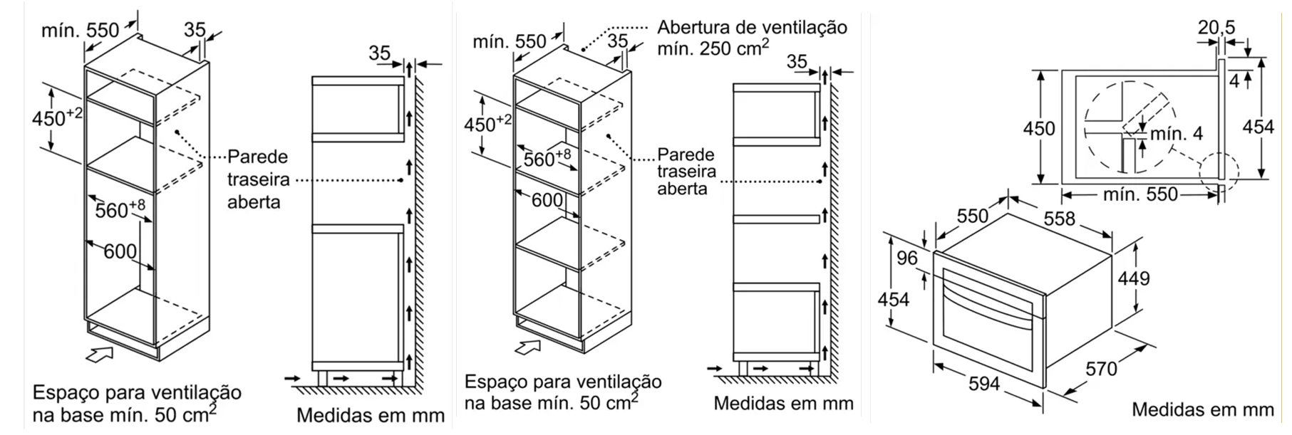 Dimensões do aparelho (altura, largura, profundidade (sem incluir a porta)) (mm) 454 x 594 x 570 mm