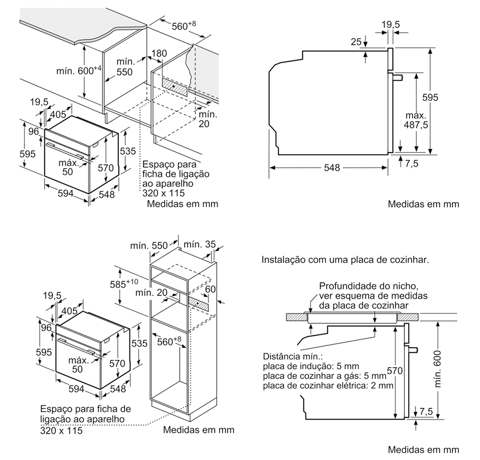 Dimensões do nicho (AxLxP): 585-595 x 560-568 x 550 mm