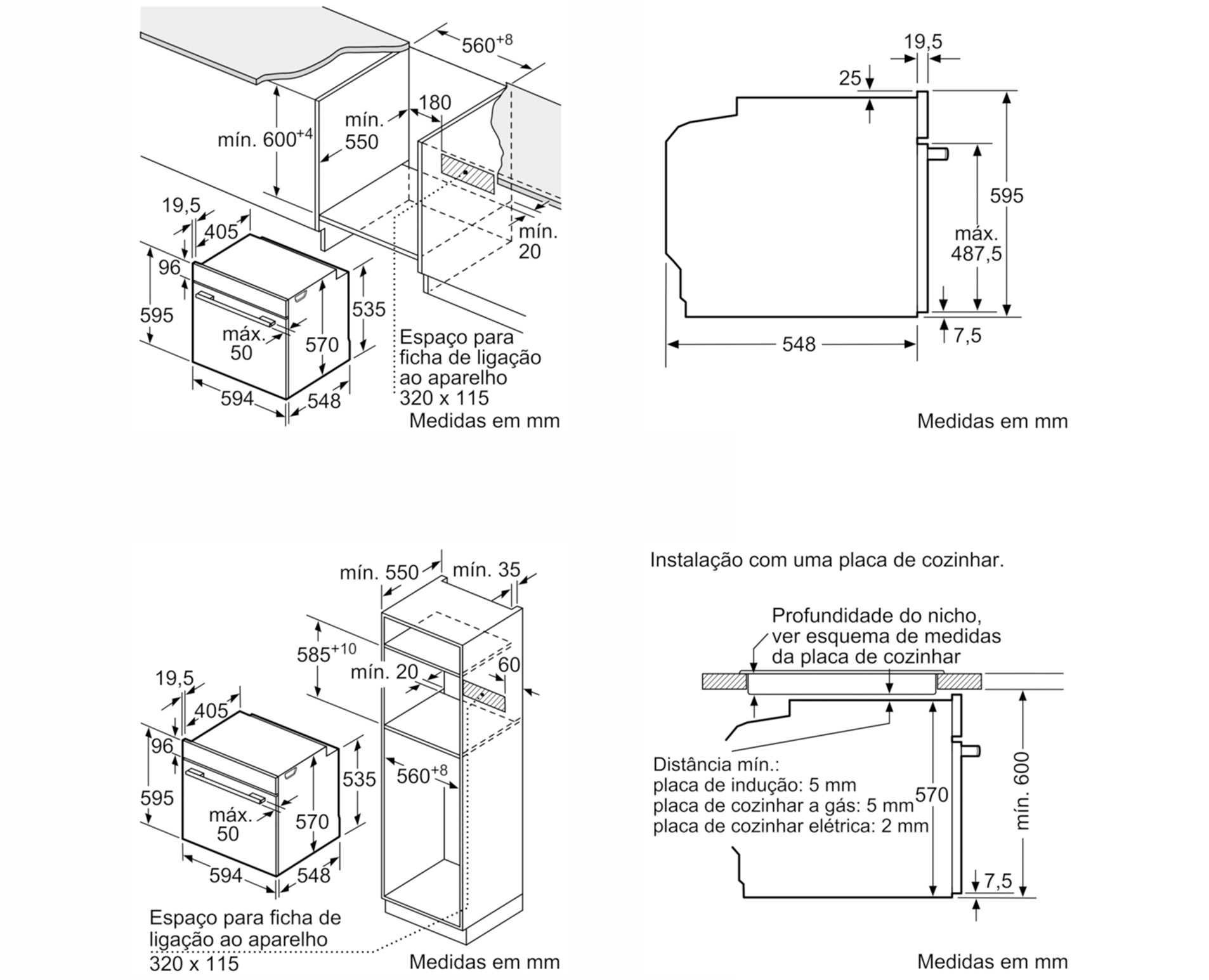 Dimensões do nicho (AxLxP): 585-595 x 560-568 x 550 mm