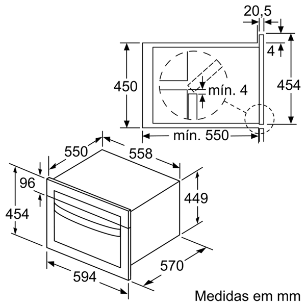 Medidas do nicho para instalação(mm) 450-458 x 560-568 x 550 mm